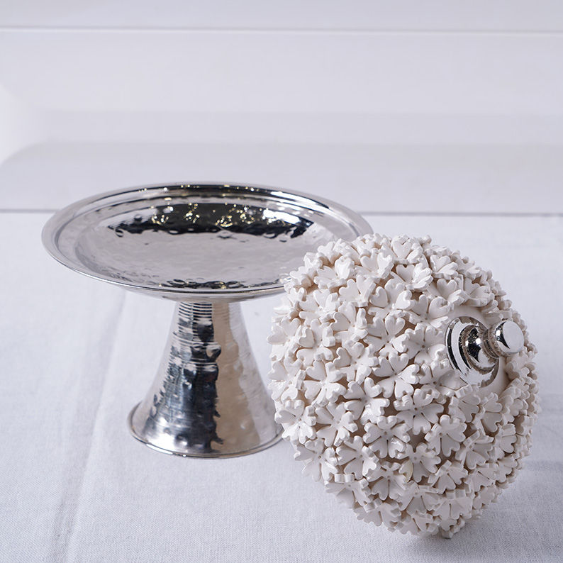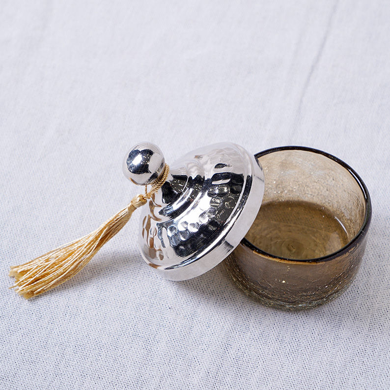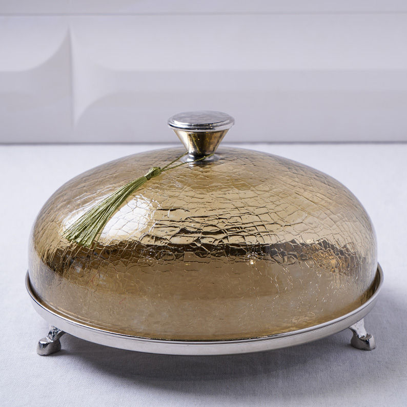 Présentoir En Cuivre Avec Cloche En Verre Soufflé