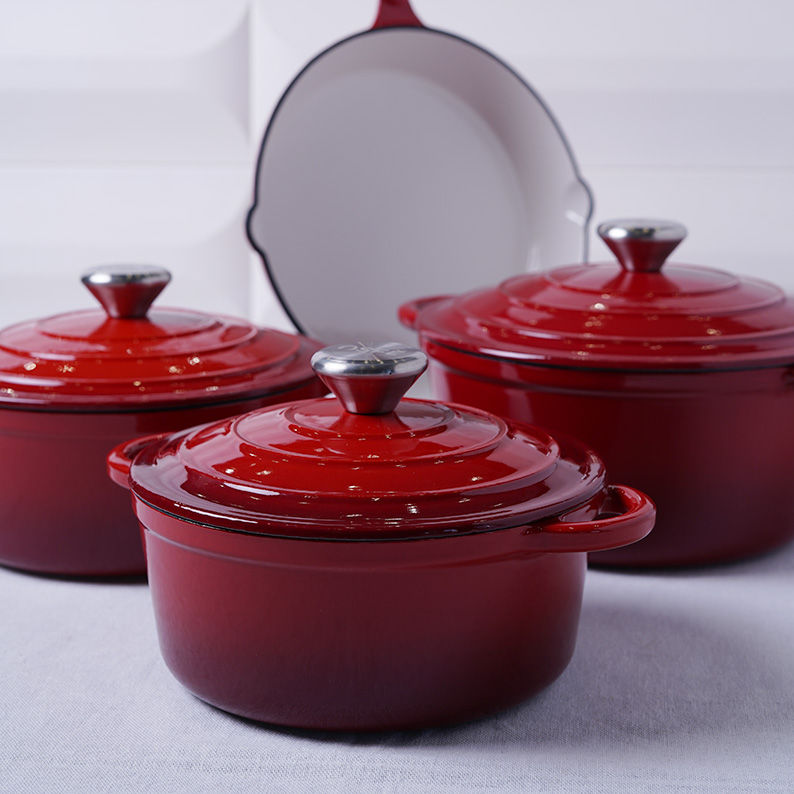 3 Cocottes / Casseroles : 20 cm, 22 cm et 24 cm (avec 3 couvercles en fonte assortis).