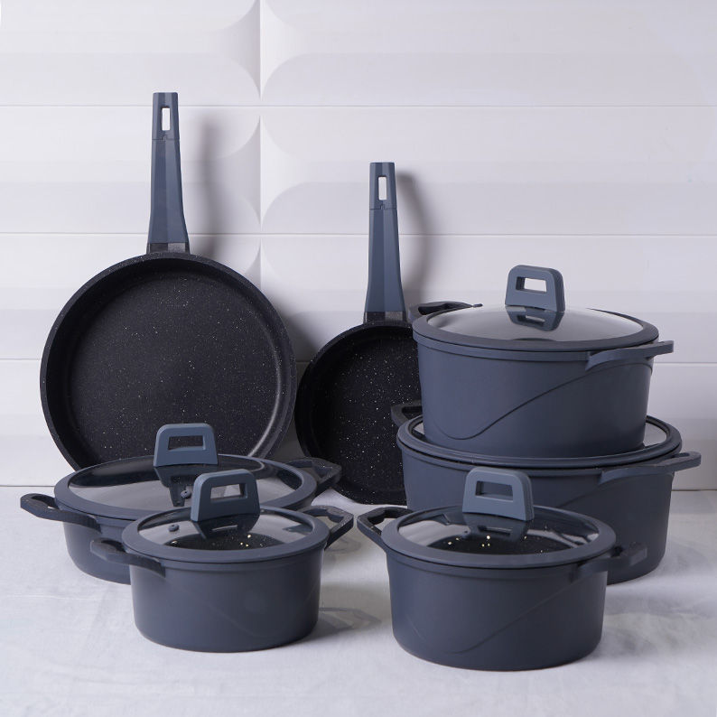 Cette Batterie de Cuisine VIVALDI 12 Pièces allie élégance moderne et performance culinaire. Arborant un design contemporain en gris anthracite avec une finition intérieure effet "granit" moucheté, cet ensemble est conçu pour offrir une expérience de cuisson saine et antiadhésive.