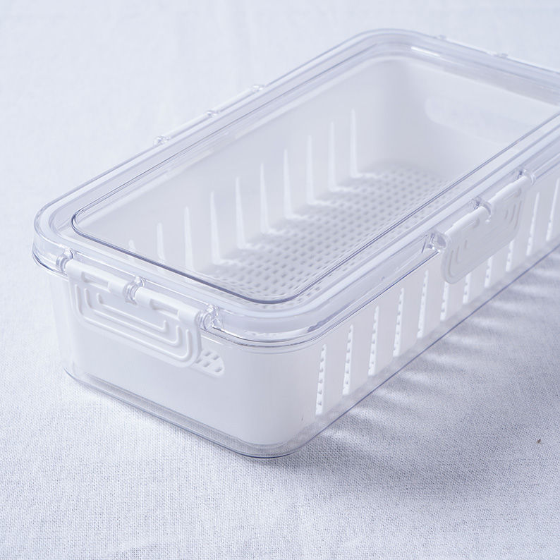 Système 2-en-1 : Comprend un bac extérieur transparent et un panier intérieur amovible perforé (passoire). Ce système permet de laver vos aliments directement dans le panier et de laisser l'excès d'eau s'écouler au fond de la boîte, évitant ainsi le ramollissement et la moisissure.