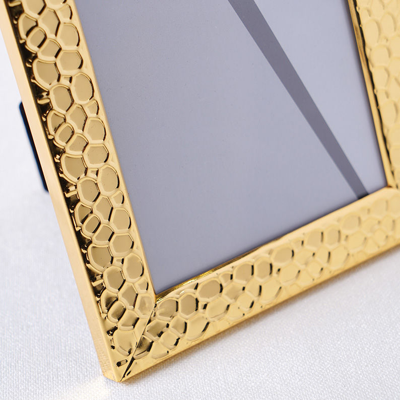 Esthétique texturée : Cadre orné d'un motif martelé sophistiqué offrant un jeu de relief et de brillance.