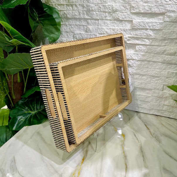 Ensemble de deux plateaux en bois au design naturel et élégant, parfaits pour servir vos boissons, petits-déjeuners ou apéritifs avec style. Fabriqués en bois robuste et durable, ces plateaux allient charme rustique et praticité au quotidien