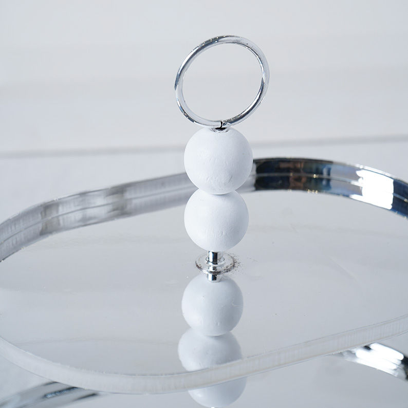 Détails : Finition brillante sur les plateaux et anneau de préhension chromé sur le dessus. Le plateau inférieur repose sur des pieds en métal pour une stabilité optimale.