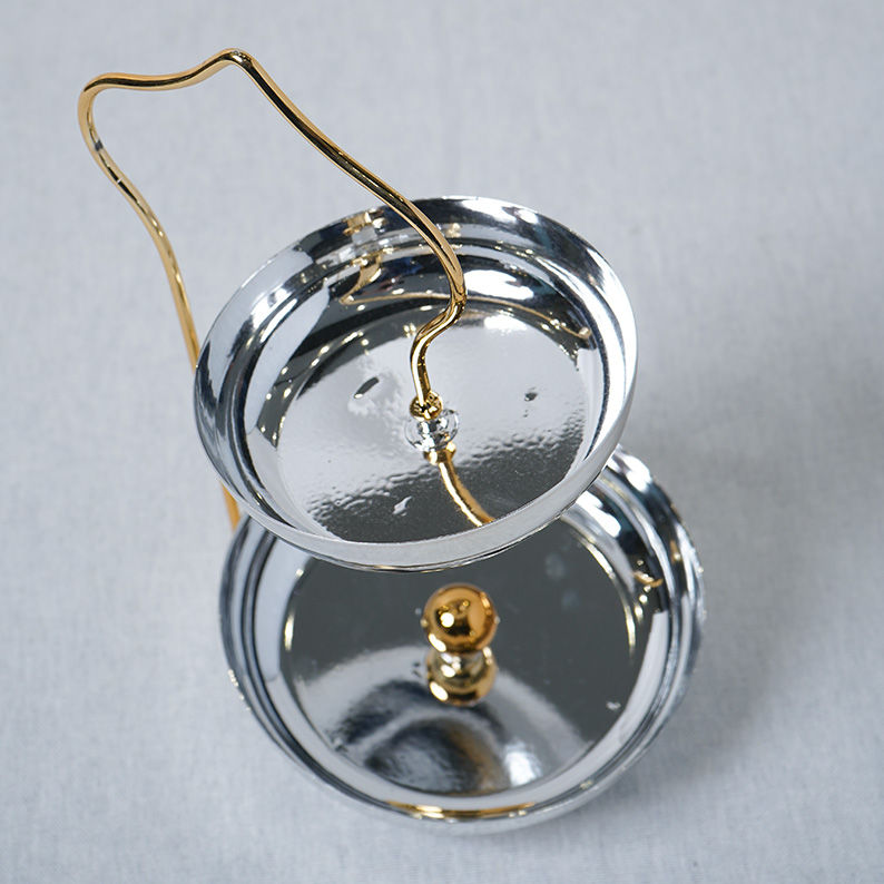 Ce serviteur à deux étages allie parfaitement le chic du doré et l'éclat de l'argent miroir. Son design épuré et sa structure élancée en font une pièce maîtresse pour votre décoration.