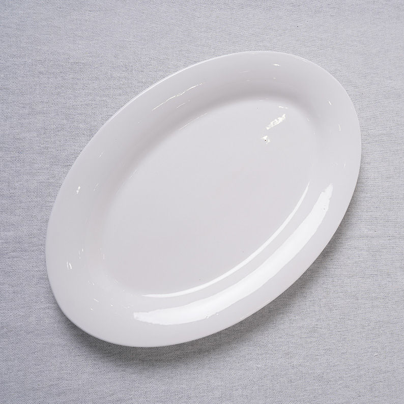 Ce plat ovale présente un design classique et épuré, idéal pour une présentation élégante de vos mets.