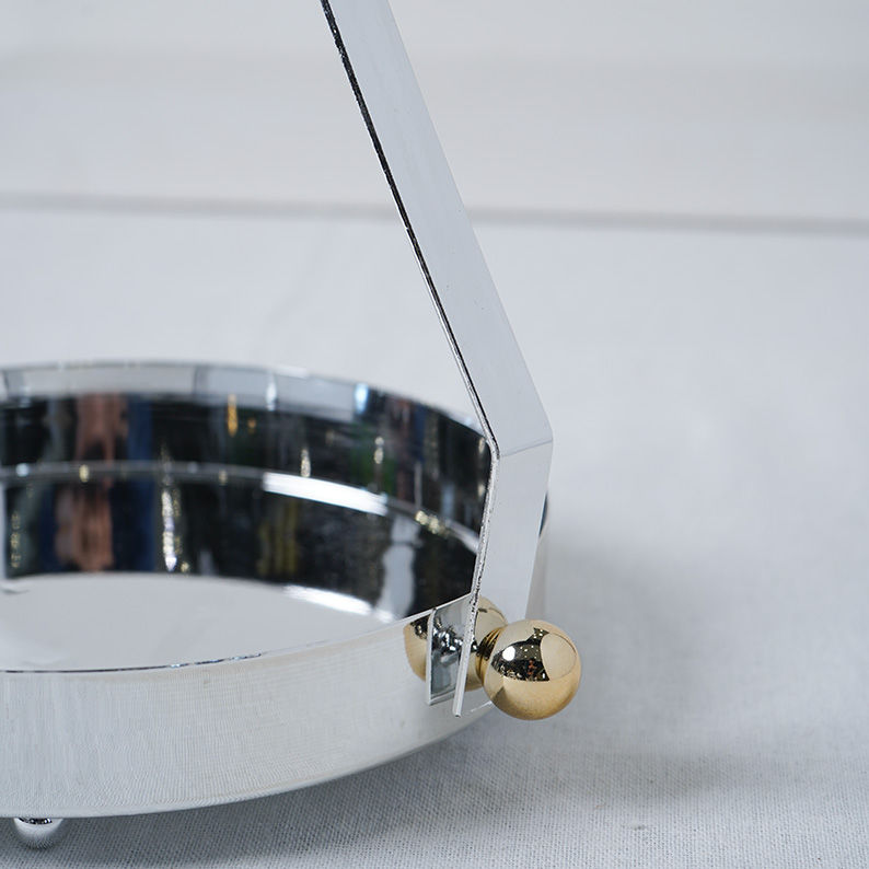 Ce plateau rond au style moderne et luxueux allie l'éclat du chrome et le raffinement de détails dorés.