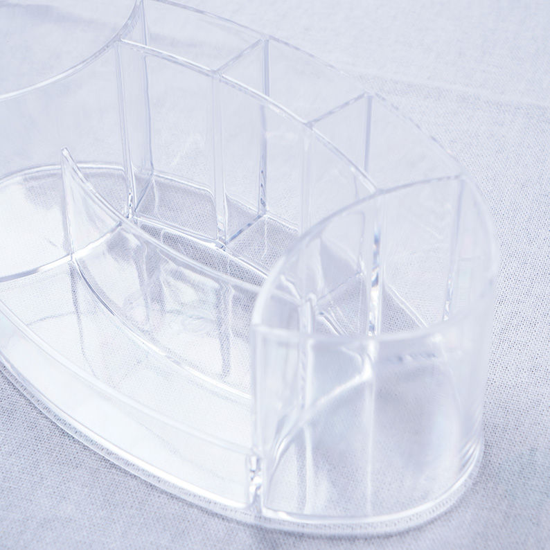 Ce porte-maquillage élégant en plexiglas transparent est conçu pour offrir une organisation optimale de vos produits de beauté tout en restant discret sur votre coiffeuse ou dans votre salle de bain. Sa structure robuste et sa transparence cristalline permettent de visualiser l'ensemble de votre collection en un coup d'œil.