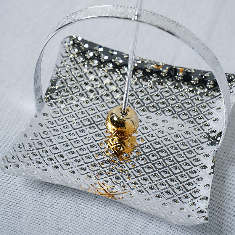 Matériaux et Finition : Fabriqué en métal argenté avec une texture gaufrée à petits points, offrant un bel effet de brillance.