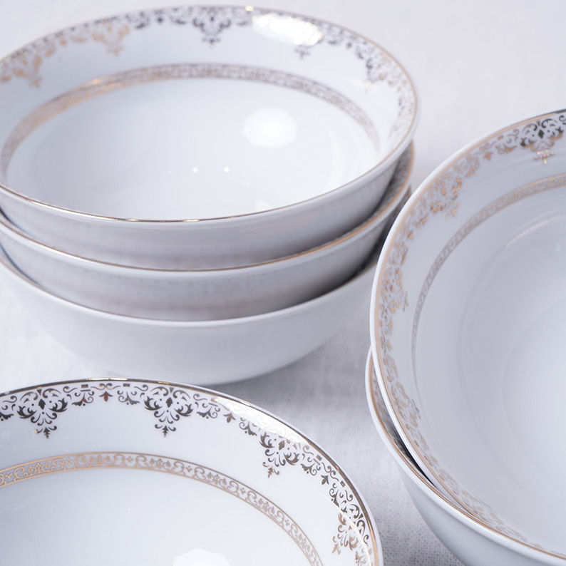 Assiettes creuses : Pour les soupes ou les pâtes, avec une large bordure dorée.