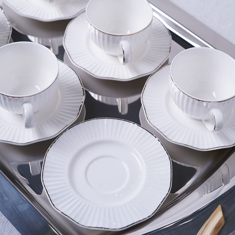 Décoration en Relief : Le corps de la tasse est orné de fines lignes verticales en relief (côtes), qui donnent une texture subtile et classique à la pièce.