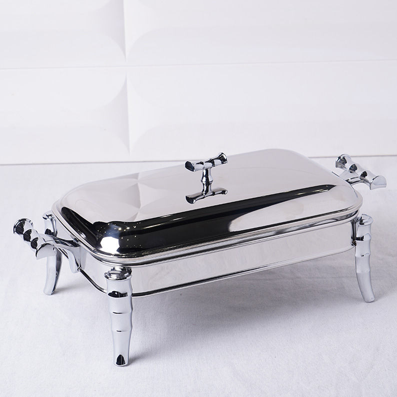 Système de Réchaud : Le support métallique intègre deux emplacements pour des bougies chauffe-plat (tealights). Cela permet de maintenir vos aliments à la température de service idéale pendant toute la durée du repas.