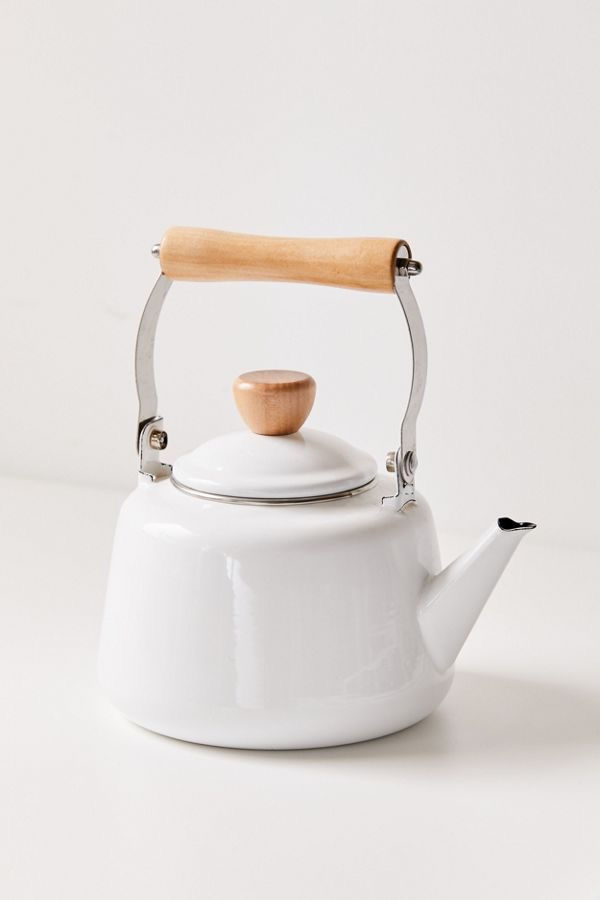Théière au design épuré de 1,5 L en acier émaillé blanc brillant.